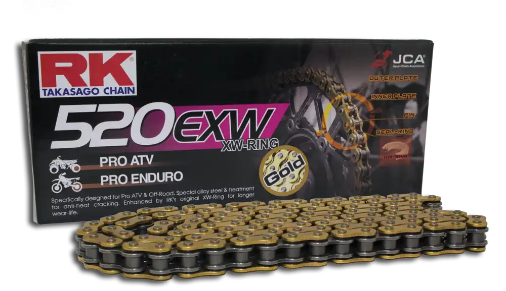 De RK GB520EXW is een hoogwaardige ketting die speciaal is ontworpen voor optimale prestaties en duurzaamheid. Met de super versterkte gouden afwerking biedt deze ketting niet alleen een esthetisch aantrekkelijk uiterlijk, maar ook een verbeterde weerstand tegen slijtage en corrosie.
