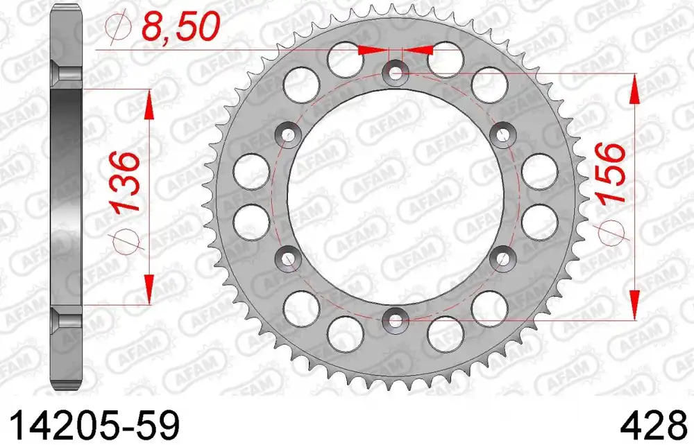 De AFAM REAR STEEL 59T, 428 is een hoogwaardige sprocket die ontworpen is voor optimale prestaties. Met een tandwiel van 59 tanden en een kettingmaat van 428, biedt dit onderdeel uitstekende krachtoverdracht en duurzaamheid. Of je nu een fervente motorrijder bent of gewoon je scooter wilt onderhouden, deze sprocket is een betrouwbare keuze.