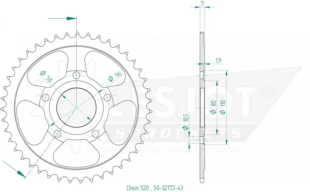 De ESJOT REAR STEEL 43T, 520 is een hoogwaardige sprocket die speciaal is ontworpen voor motorfietsen en scooters. Deze sprocket biedt uitmuntende prestaties en duurzaamheid, waardoor je voertuig soepel en betrouwbaar blijft rijden.