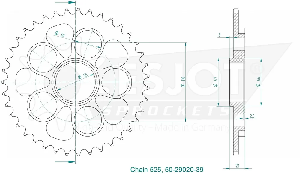 De ESJOT REAR STEEL 39T, 525 is een hoogwaardige sprocket die ontworpen is voor optimale prestaties van je motor of scooter. Met een tandenaantal van 39 en een kettingmaat van 525, biedt deze sprocket de perfecte balans tussen kracht en snelheid.