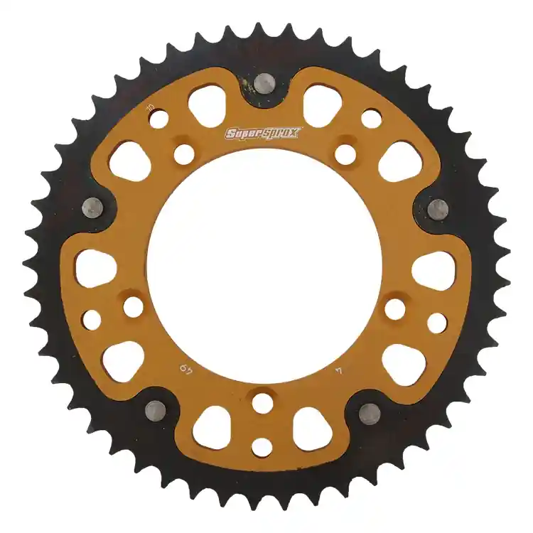 De SUPERSPROX REAR STEALTH 49T in de opvallende gouden kleur is een essentieel onderdeel voor jouw motor. Met een tandwielverhouding van 49T en een 420 kettingcompatibiliteit biedt deze sprocket optimale prestaties en duurzaamheid. Ontwikkeld voor de serieuze motorrijder die alleen het beste wil.