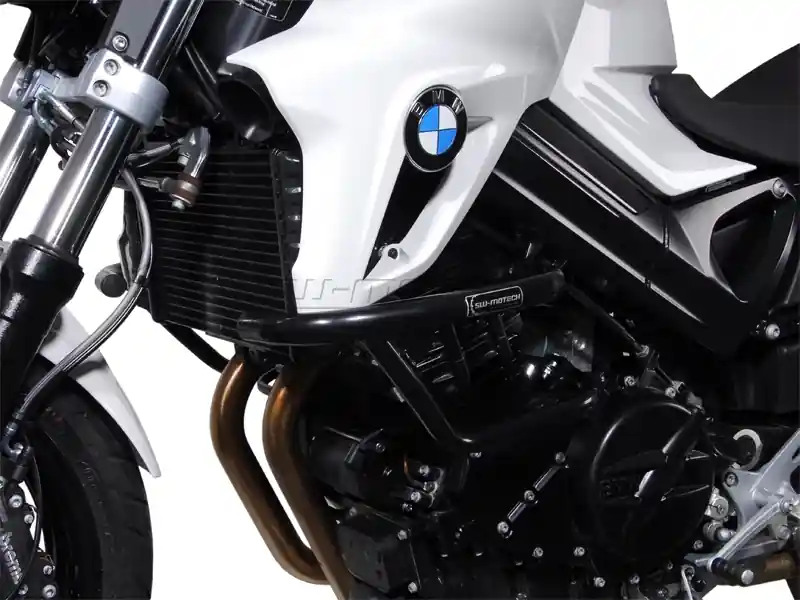 Valbeugel voor de BMW F800R (controleer in de motorlijst het bouwjaar van de F800R). De beschermbeugel van SW-Motech is een complete set (links en rechts) die voorkomt of beperkt de schade bij het eventueel omvallen van de motor. Dit kan zowel schade zijn aan het kuipwerk, maar ook bescherming van motorblokonderdelen. Iets dat niet altijd te voorkomen is als je off-road rijdt of in ruwer terrein betreedt met je motor. De motorbeugels of beschermbeugels van SW-Motech zijn zeer stevig uitgevoerd en worden bevestigd aan bestaande punten van je motor. Mocht er overigens kleine schade ontstaan aan de beugels, dan zijn er lak/coating reparatiesetjes van SW-Motech verkrijgbaar.