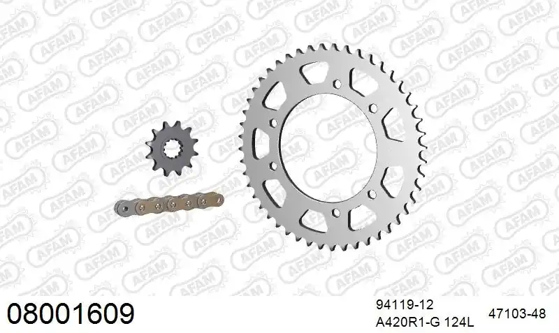 De AFAM 420R1 124 AR kettingset is ontworpen zonder specifieke merk- of modelcompatibiliteit. Controleer altijd de specificaties van jouw voertuig voordat je een aankoop doet.
