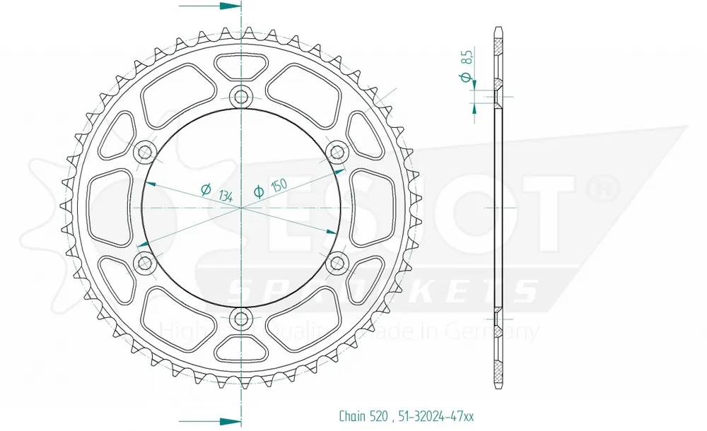 De ESJOT REAR ALU 47T is een hoogwaardige sprocket ontworpen voor een optimale prestatie van je motor. Met een tandwielverhouding van 47T en een 520 kettingcompatibiliteit, biedt deze sprocket een uitstekende balans tussen snelheid en controle. Het zwarte aluminium ontwerp zorgt niet alleen voor een strakke uitstraling maar ook voor een lagere gewicht, wat bijdraagt aan de algehele prestaties van je motor.