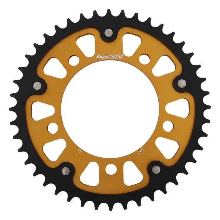 De gouden afwerking van de sprocket maakt niet alleen je motor aantrekkelijker, maar biedt ook extra bescherming tegen slijtage en corrosie.
