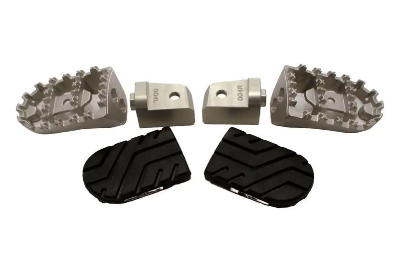 Voetsteunen van SW-Motech voor de Honda XRV750 Africa Twin (controleer in de motorlijst het bouwjaar van de XRV750 Africa Twin). Deze voetsteunen zijn zeer stevig voor het ruigere werk. Het metalen deel is van RVS en het rubber bovenzijde is ontwikkeld om een stevige ondersteuning te hebben voor de voet. De hoogte is in 2 standen verstelbaar, namelijk de originele hoogte en 15mm lager. De voetsteunen van SW-Motech zijn uitstekend geschikt voor Off-Road, All-road en tourgebruik.