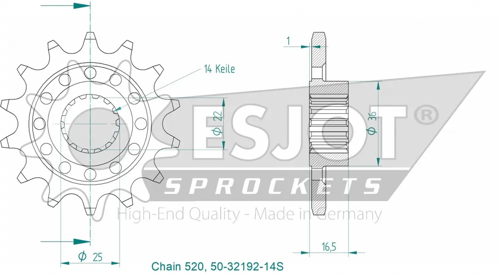 Weekendaanbieding ESJOT – FRONT 14T, LIGHT, 520 – Sprockets – Compatibiliteit met Ducati