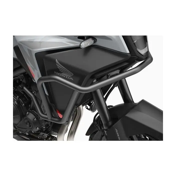De valbeugel heeft volgende doeleinden: potenti�le schade aan onderdelen aan de buitenkant beperken in geval van contact en je motorfiets een stoer en avontuurlijk uiterlijk geven. Deze valbeugel is strategisch geplaatst om de off-road capaciteiten van de motorfiets te verbeteren door extra bescherming te bieden tijdens avontuurlijke ritten. Gemaakt van roestvrij staal en afgewerkt in zwart.