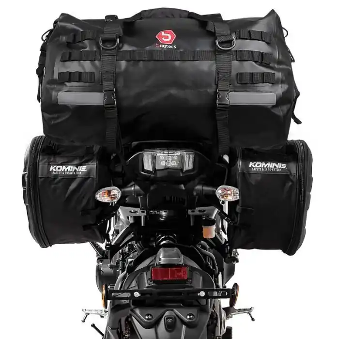 - Set van motor zadeltassen en achtertas met totaal volume 110 liters